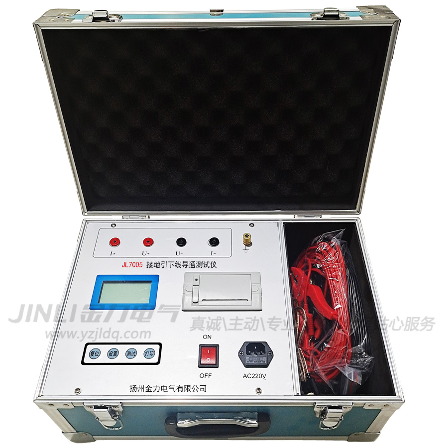 JL7005接地引下線導通測試儀采用單片機控制,自動化程度高,可實現測試過程智能化,具有根據被測試品的阻值大小自動切換測試電流的功能,操作簡單方便,精度高,測試速度快,數據準確,復測性好,讀數直觀,大大減輕了現場工作人員的勞動強度,能迅速準確地測量兩根接地引下線的腐蝕程度,以便及早發現并消除事故隱患。